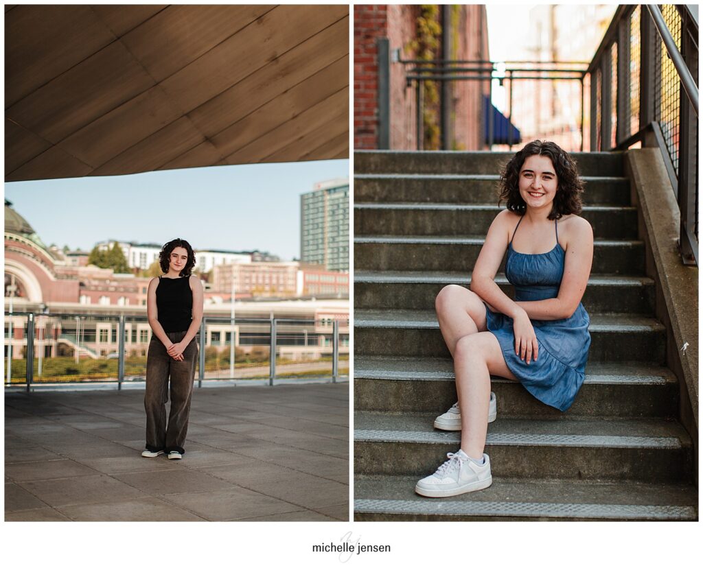 Janelle’s Tacoma senior portrait session was perfect in every way! She wanted a modern, urban, editorial vibe, so we started our time at the Museum of Glass, then ventured over to Union Station, and then on to UW Tacoma campus.